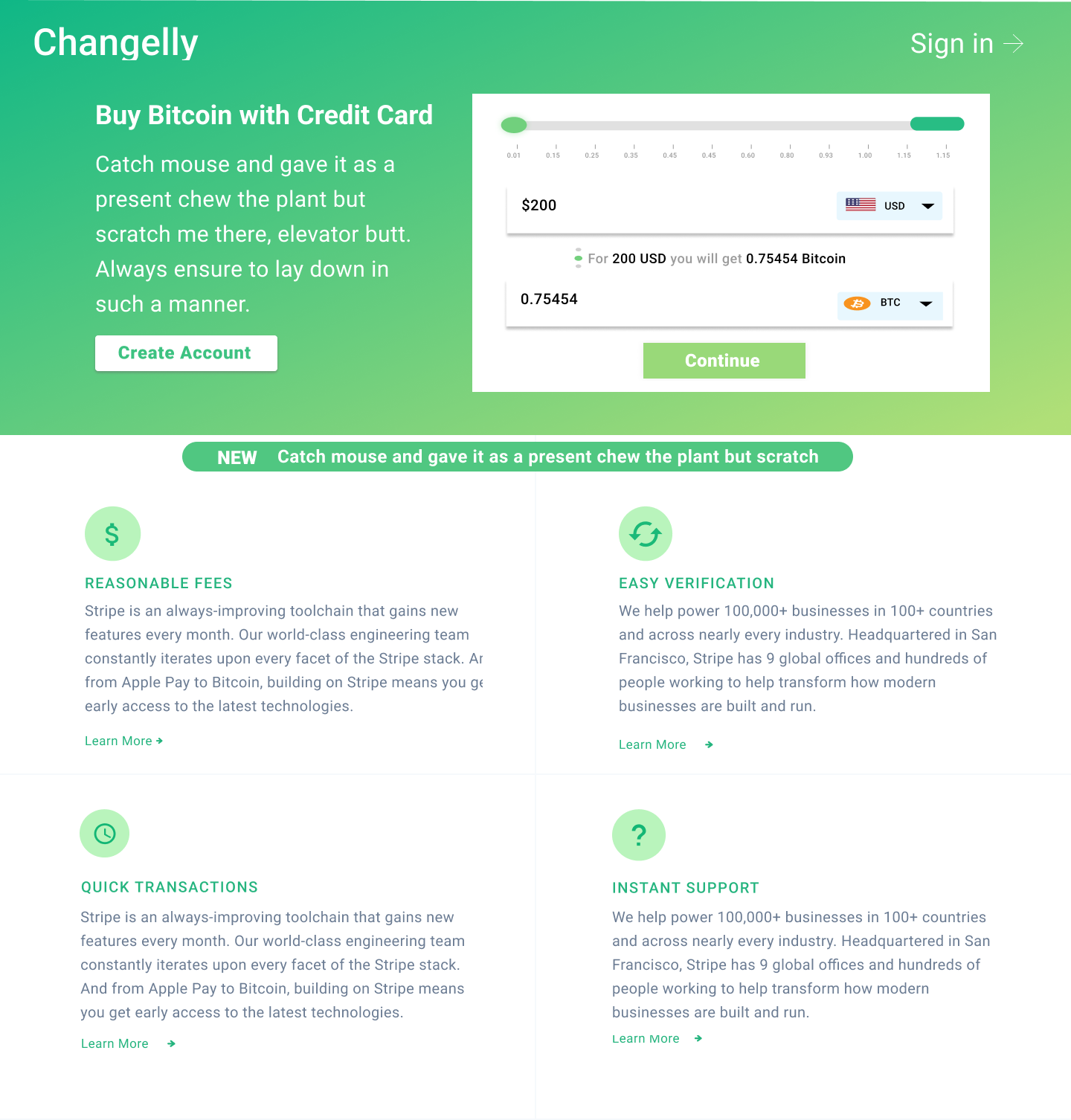 I adjusted the text “Buy Bitcoin with Credit Card” and increased the size of the “CREATE ACCOUNT” button to emphasize the business goal for this page, which was to get users to create an account.