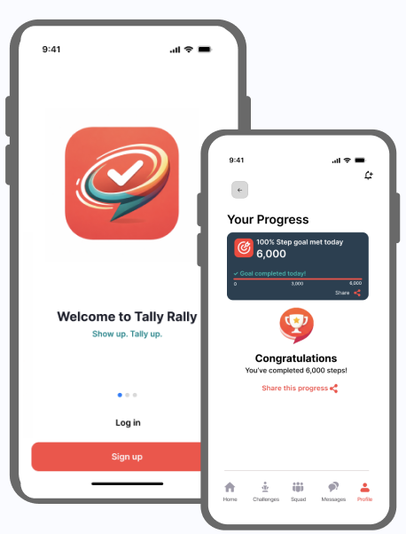 Tally Rally addresses this issue by fostering motivation through squad-based challenges and real-time social interaction, positioning accountability as a central component of the user experience.